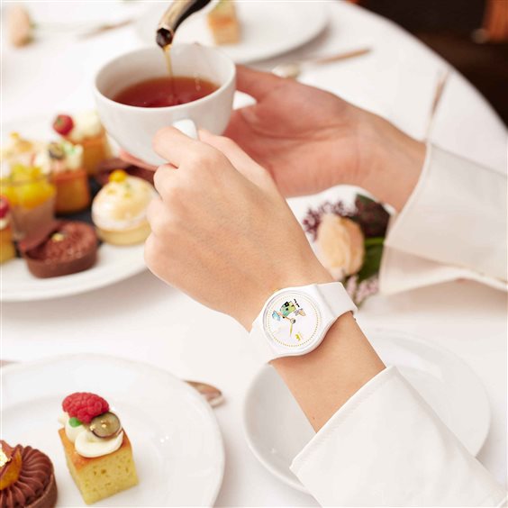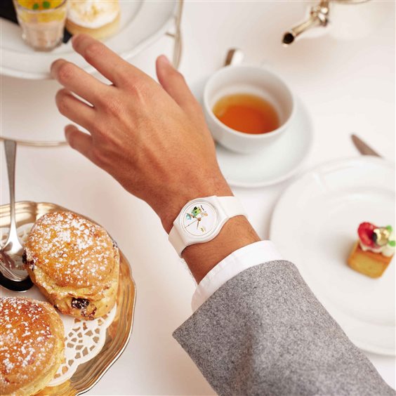 HOW MAJESTIC - Caratterizzato da un quadrante chiaro e da una stampa dorata, questo orologio Gent presenta 70 punti colorati in oro per festeggiare i 70 anni di regno della regina. La peculiarità di questo orologio consiste nel datario che cambia colore e modifica ogni giorno il colore dell'outfit della regina. Questo orologio è abbellito da una robusta cassa e da un cinturino in silicone di colore bianco opaco, con effetto Anodamazing. In questa speciale confezione rivestita è inclusa una sorpresa unica: una scintillante corona di carta di colore argento.