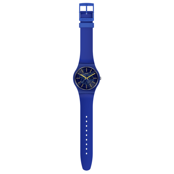 Il fiore all'occhiello di questo orologio New Gent BIOSOURCED è il quadrante chiaro spazzolato soleil con una stampa blu e gialla e un vetro di origine biologica. Le decise sfumature blu opaco della cassa in plastica di origine biologica, il cinturino, il passante e la fibbia rappresentano lo sfondo ideale per questo modello sofisticato.