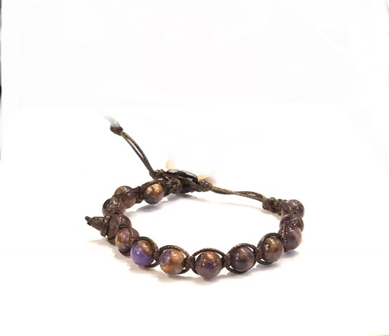 In Tibet i gioielli hanno un forte valore simbolico e tramandano valori culturali e religiosi antichissimi. Nella tradizione buddhista le gemme e i gioielli servono come metafore per gli ideali della fede ed esprimono misteriose condizioni spirituali e attributi interiori nascosti. Tamashii (o Shamballa) è un bracciale utilizzato dai monaci tibetani per favorire la meditazione, per le pratiche religiose e come talismano. Infatti Tamashii significa “anima” e il termine deriva da 'tama' che significa “gioiello”, quindi “gioiello dell’anima”. Chi lo indossa persegue un ideale di pace e di amore verso se stesso e verso il mondo, il bracciale aiuta a proteggere la sua anima, a farla crescere e farle trovare un ruolo ed un senso all'interno della vita. Prodotto realizzato in Tibet e benedetto da monaci buddisti. Pietra di questo tamashii è quarzo VIOLA e oro a mosaico. Ogni bracciale è spedito con relativa confezione originale e certificato di garanzia.