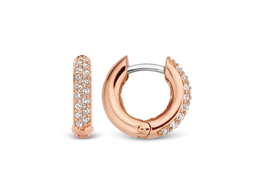 Questi cerchi TI SENTO - Milano sono realizzati in argento, con placcatura in oro rosa da 18 carati e forniscono la base per innumerevoli combinazioni. La parte anteriore degli orecchini è realizzata con zirconi incastonati a pavé. Gli orecchini possono esseren indossati separatamente o combinati con ciondoli per orecchino. Possono ad esempio essere indossati con i ciondoli in oro rosa per dare ancora più enfasi al colore. Questi orecchini sono adatti a tutti i charm per orecchini. Abbinali e combinali come più ti piace!