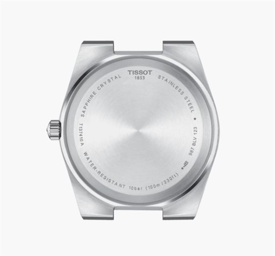 Nel 1978 Tissot creò un modello al quarzo, caratterizzato da una cassa sottile, indici stretti e un bracciale in acciaio. La sua ampia ansa orizzontale, tipica dell'epoca, era perfettamente integrata nella cassa piatta a forma di tonneau. Pochi anni dopo, Tissot ha registrato il nome PRX. "PR" sta per "preciso" e "robusto". La "X" sta per il numero romano dieci e per la pressione di 10 bar che l'orologio è in grado di sopportare. Nel 2021 Tissot ha presentato il PRX 40205, È una versione moderna del modello precedente. La cassa in acciaio inossidabile 316L del Tissot PRX 40205 ha un diametro di 40 mm. Ha una forma leggermente tonneau ed è ornato da una lunetta stretta e rotonda. Ai lati, spazzolate verticalmente, finiture arrotondate si alternano a sfaccettature lucide. Il Tissot PRX 40205 Quartz è dotato di un quadrante con un motivo a raggiera nero o blu in combinazione con indici e lancette nichelati. Esiste anche una variante con quadrante grigio argento satinato con indici e lancette color oro rosa, una combinazione di colori che ricorda la fine degli anni '70. La flessibilità e morbidezza delle maglie ne fanno un vero successo di design ergonomico e trasmettono uno straordinario comfort. Le lancette del PRX 40 205 sono dotate di un rivestimento SuperLumiNova® e sono posizionate l'una sull'altra con uno spazio minimo. Ciò consente di avvicinare il quadrante al vetro dell'orologio. L'effetto ottico ottenuto dai designer Tissot fa sembrare la cassa dell'orologio ancora più piatta e sottile di quanto non sia in realtà.