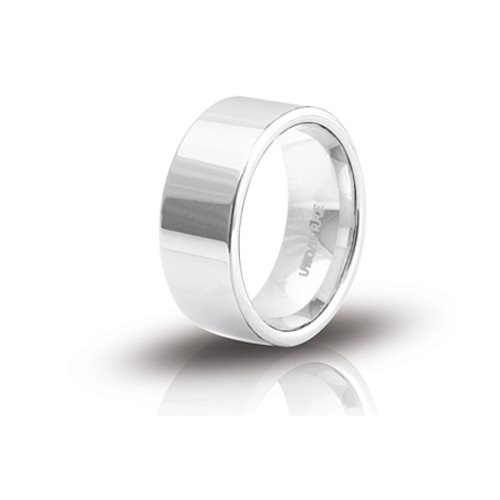Fedina di fidanzamento "Orchidea" in argento 925 bianco piatta liscia in finitura lucida.