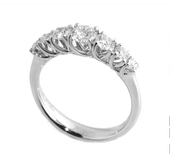 Anello riviera Grace in oro 18 Kt, con 7 diamanti taglio brillante a scalare. Made in Italy. Certificato di garanzia. Peso totale diamanti ct. 0,83 G SI.