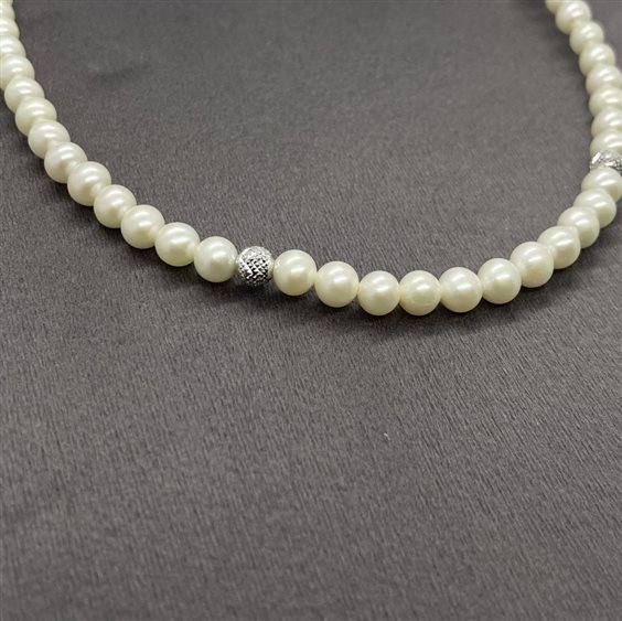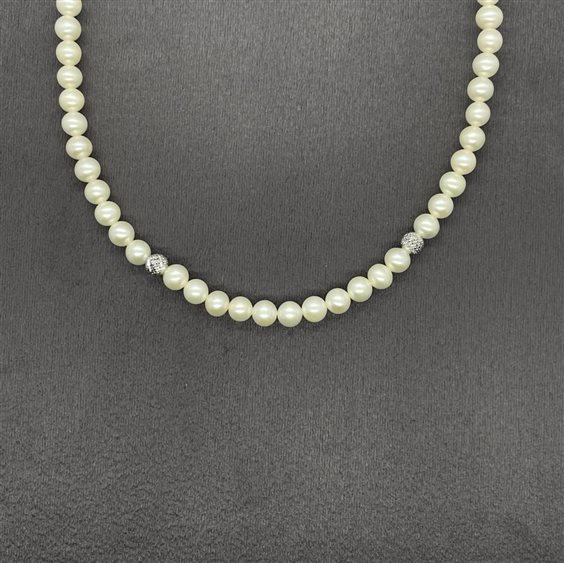 COLLANA CON ELEMENTI IN ORO BIANCO 18kt E PERLE NATURALI FW 5/5,5.