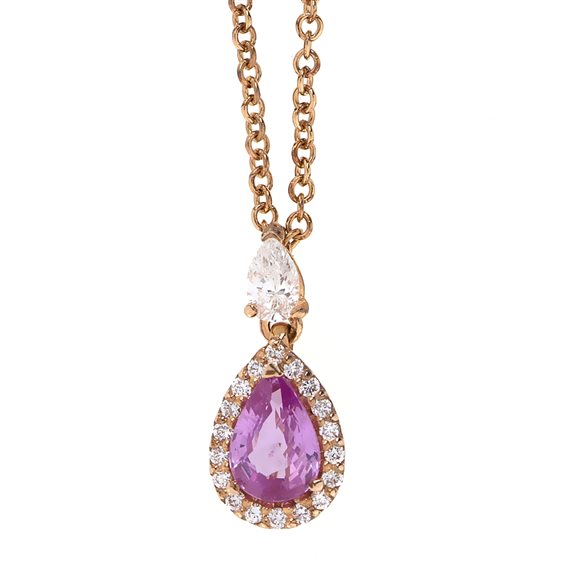 Girocollo in oro rosa 18kt con zaffiro rosa ct 0.54 e diamanti ct 0.17 colore G purezza SI1.